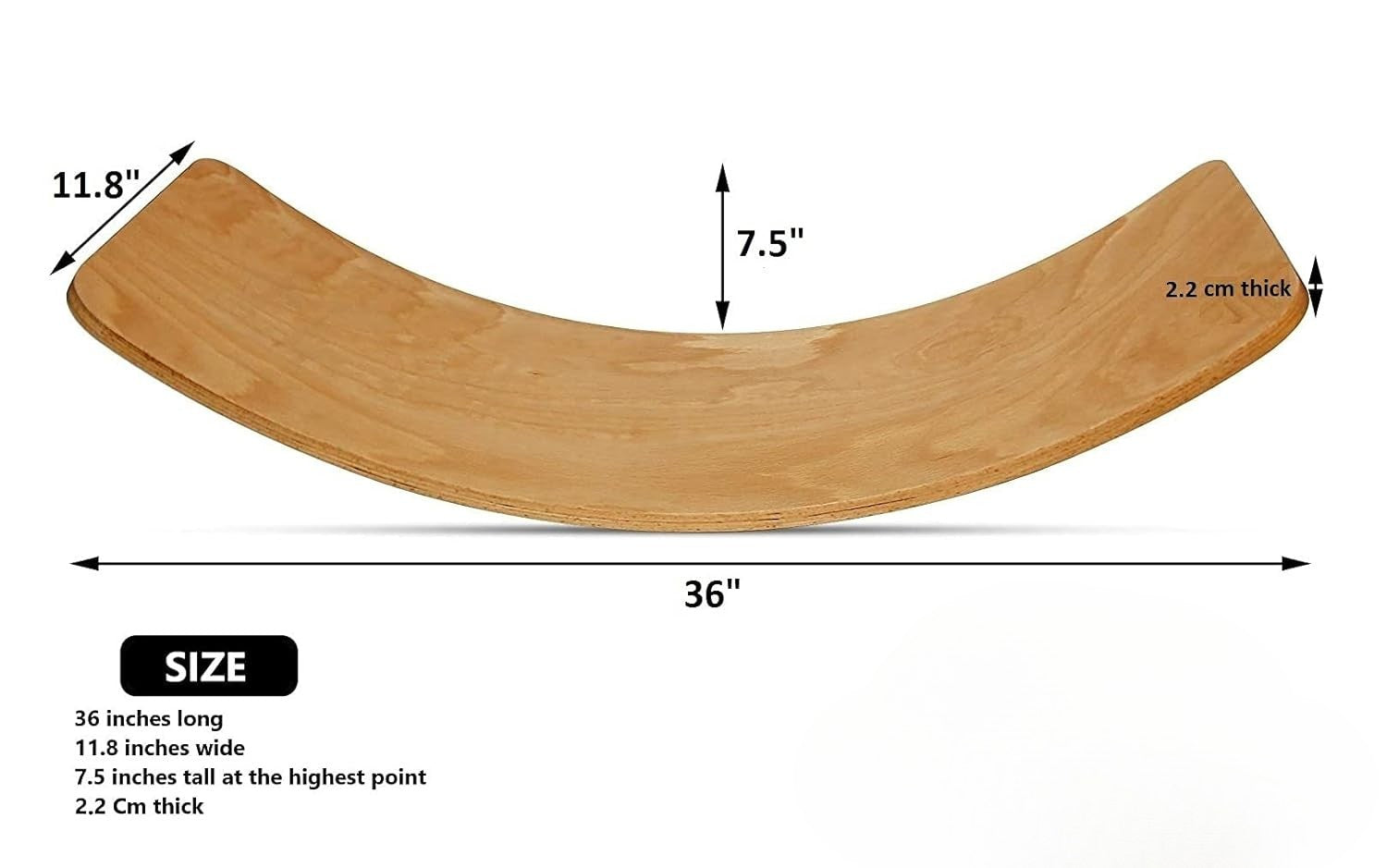 A normal wooden balancing board, also known as a wobble board, rocker board, or curvy board, is a versatile piece of equipment made from wood, most often birch or beech plywood. Its design is simple yet highly effective for a wide range of uses, from physical therapy to imaginative play.