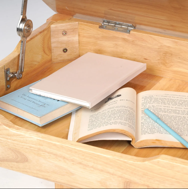 Wooden 1 Seater Study Table & Chair for 3 to 8 Year Kids with Lift Up Top Storage (Wooden, Natural Color)