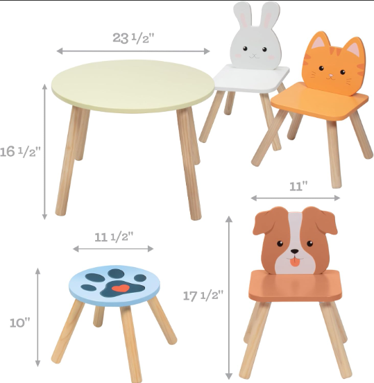 - Transform playtime or learning into a whimsical adventure with our adorable pet-themed table and chair set for kids! Featuring charming puppy, kitten, and bunny designs, it's perfect for home furniture