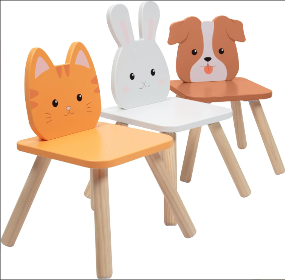- Animal Table and Chair Set - Includes 1 table, 3 chairs for kids, and 1 stool that is sturdy and comfortable enough for adults to join in on the fun- play right alongside your child! For Ages 3+.